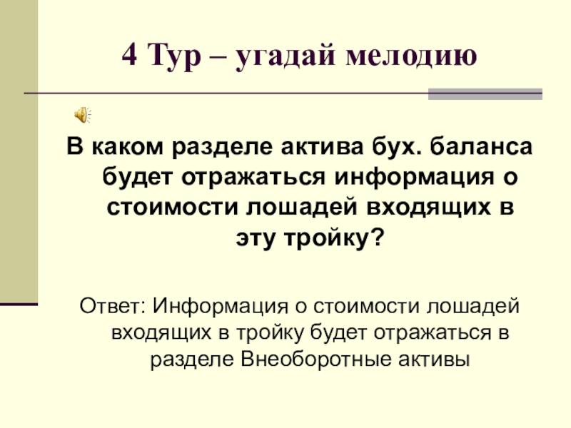 Ответ: Информация о стоимости лошадей входящих в тройку будет отражаться в разделе Внеоборотные активы