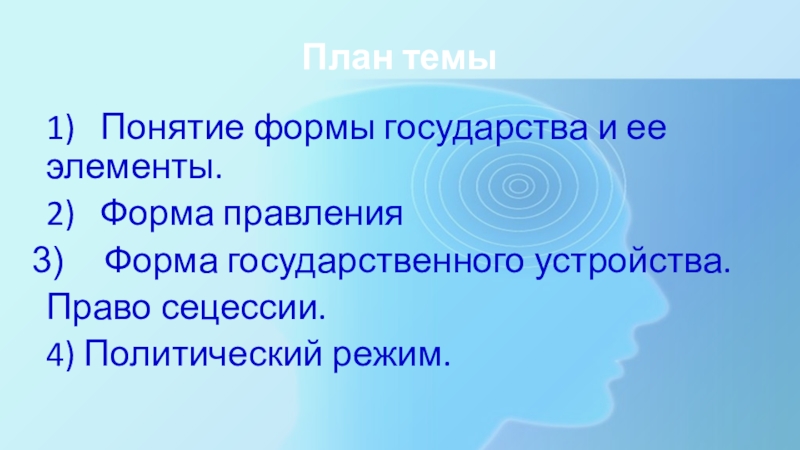 способ организации государственной власти, включающий в себя формы правления, государственное устройство и политический режим.