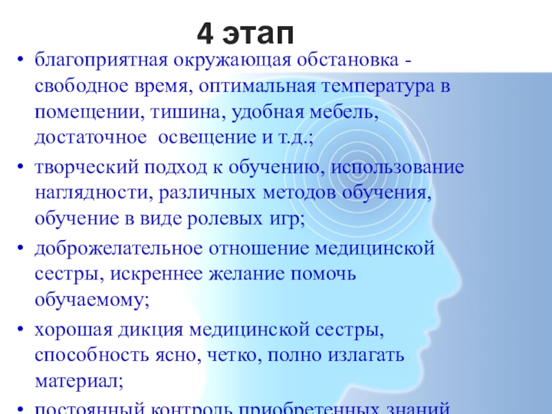 доброжелательное отношение медицинской сестры, искреннее желание помочь обучаемому;