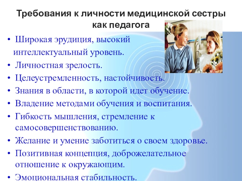 хорошая дикция медицинской сестры, способность ясно, четко, полно излагать материал;
