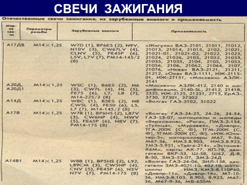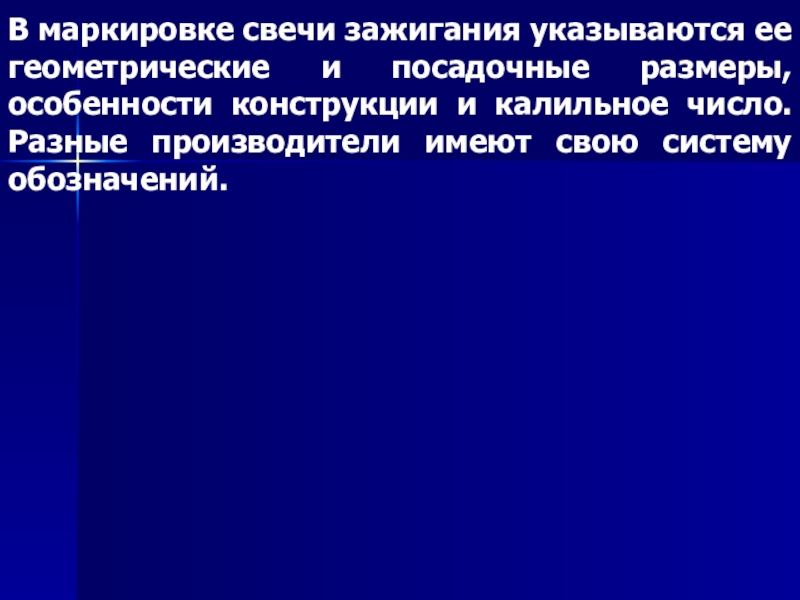 Слайд 18В маркировке свечи зажигания указываются ее геометрические и посадочные размеры, особенности