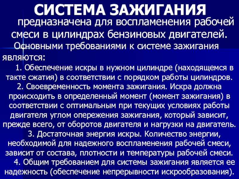 требованиями к системе зажигания являются: