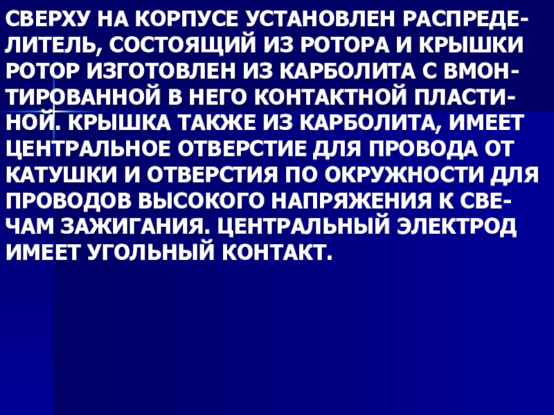 Слайд 8СВЕРХУ НА КОРПУСЕ УСТАНОВЛЕН РАСПРЕДЕ-
