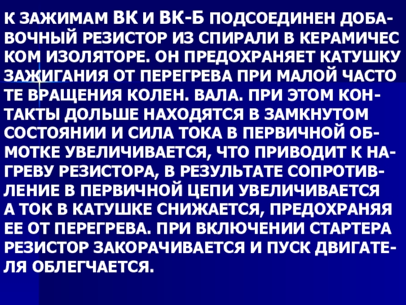 Слайд 6К ЗАЖИМАМ ВК И ВК-Б ПОДСОЕДИНЕН ДОБА- ВОЧНЫЙ РЕЗИСТОР ИЗ СПИРАЛИ