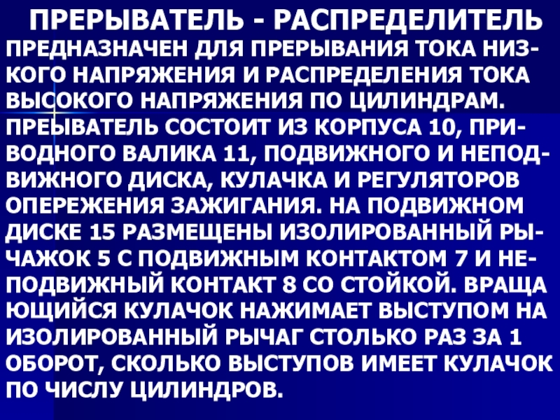 Слайд 7ПРЕРЫВАТЕЛЬ - РАСПРЕДЕЛИТЕЛЬ