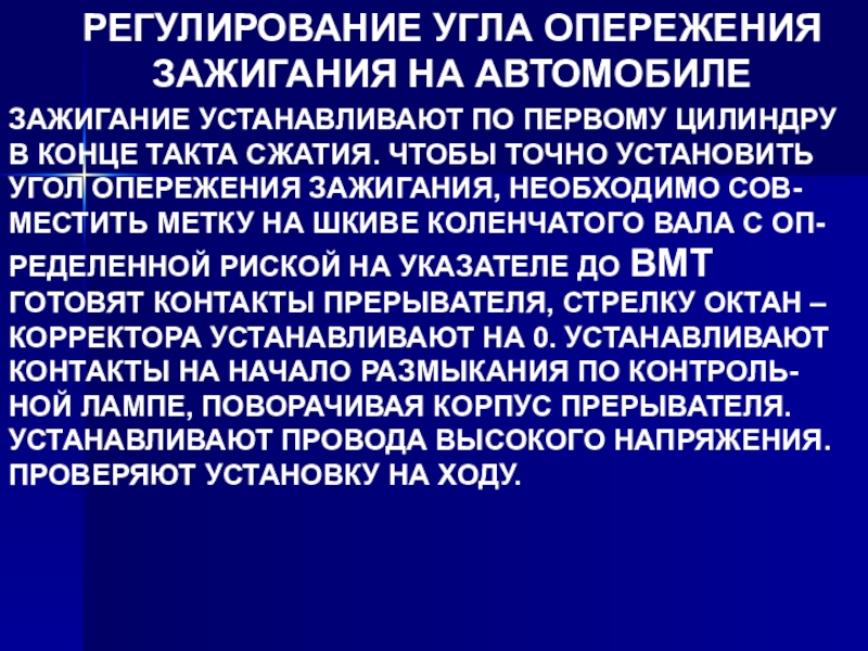 Слайд 60РЕГУЛИРОВАНИЕ УГЛА ОПЕРЕЖЕНИЯ ЗАЖИГАНИЯ НА АВТОМОБИЛЕ