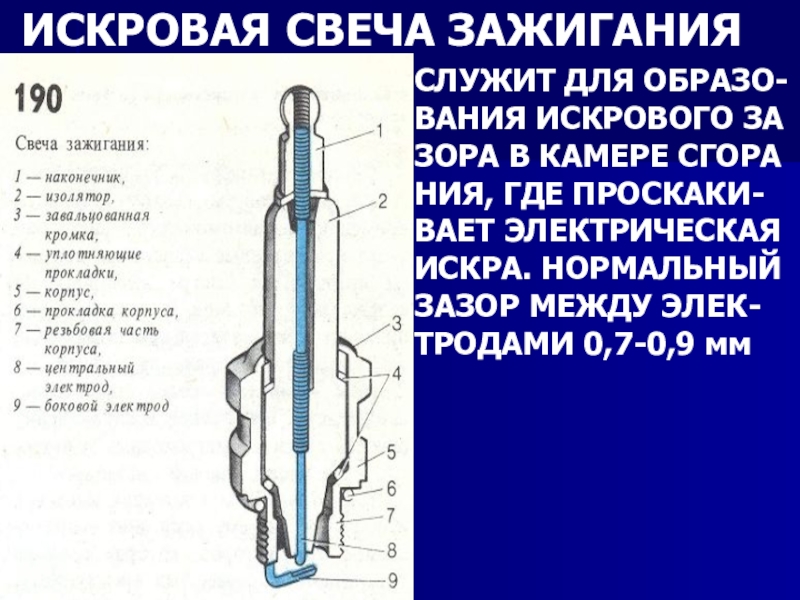 Слайд 16ИСКРОВАЯ СВЕЧА ЗАЖИГАНИЯ