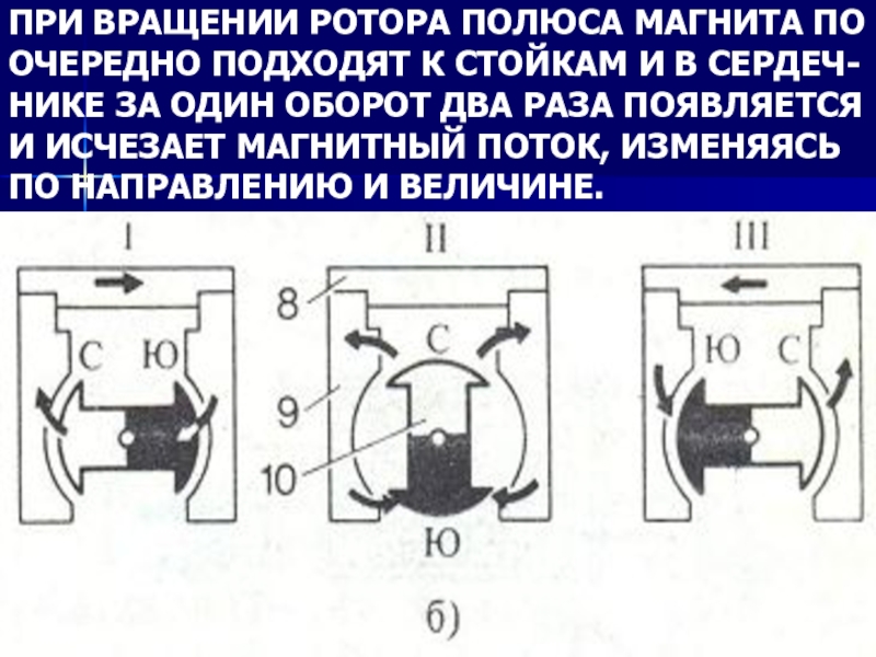 Слайд 68ПРИ ВРАЩЕНИИ РОТОРА ПОЛЮСА МАГНИТА ПО