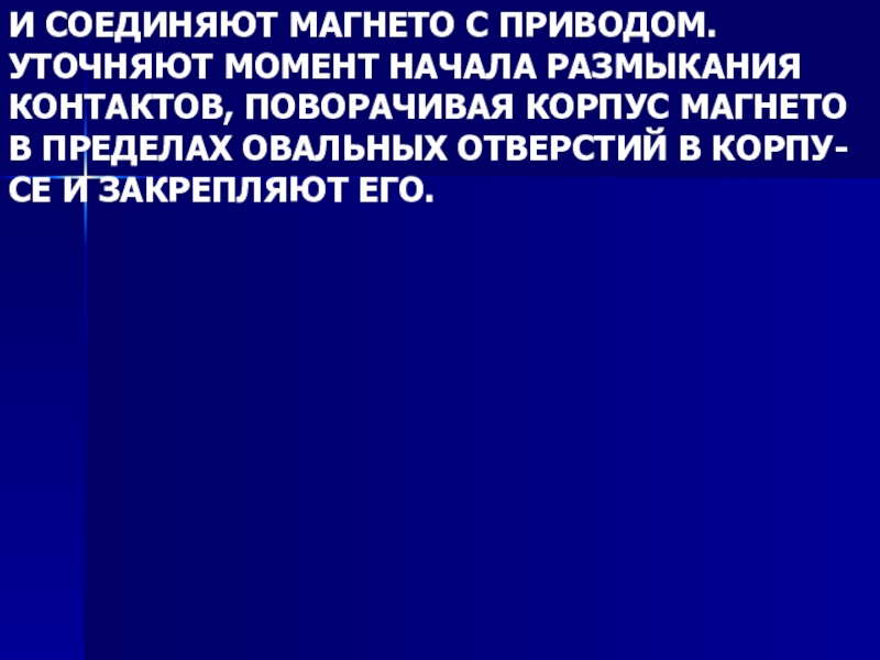 Слайд 71И СОЕДИНЯЮТ МАГНЕТО С ПРИВОДОМ. УТОЧНЯЮТ МОМЕНТ НАЧАЛА РАЗМЫКАНИЯ