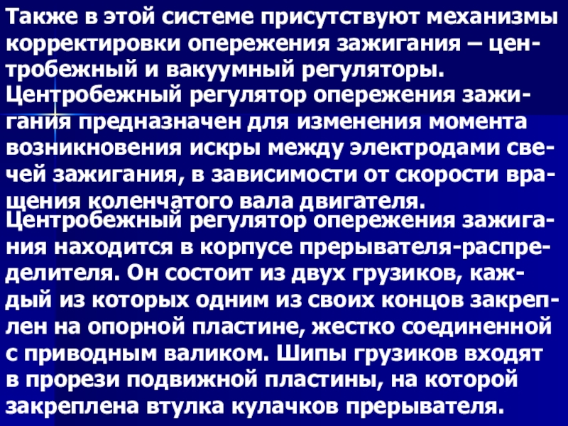 Слайд 10Также в этой системе присутствуют механизмы корректировки опережения зажигания – цен-
