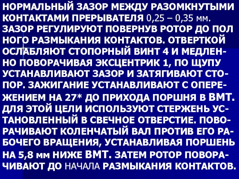 КОНТАКТАМИ ПРЕРЫВАТЕЛЯ 0,25 – 0,35 мм.