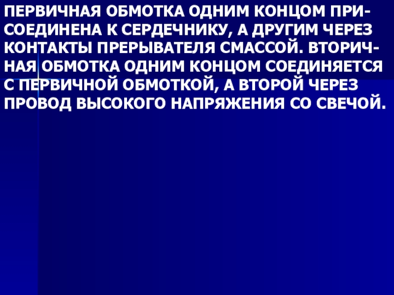 С ПЕРВИЧНОЙ ОБМОТКОЙ, А ВТОРОЙ ЧЕРЕЗ ПРОВОД ВЫСОКОГО НАПРЯЖЕНИЯ СО СВЕЧОЙ.