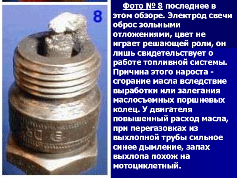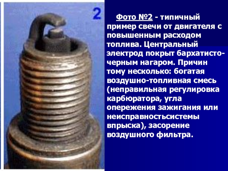 Слайд 26Фото №2 - типичный пример свечи от двигателя с повышенным расходом топлива.