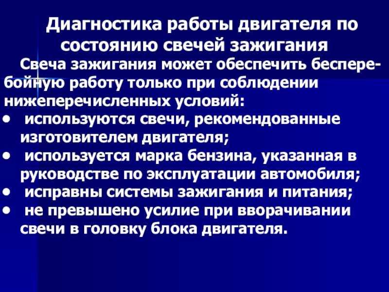 Слайд 23Диагностика работы двигателя по состоянию свечей зажигания