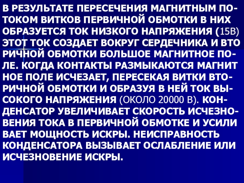 ВАЕТ МОЩНОСТЬ ИСКРЫ. НЕИСПРАВНОСТЬ КОНДЕНСАТОРА ВЫЗЫВАЕТ ОСЛАБЛЕНИЕ ИЛИ