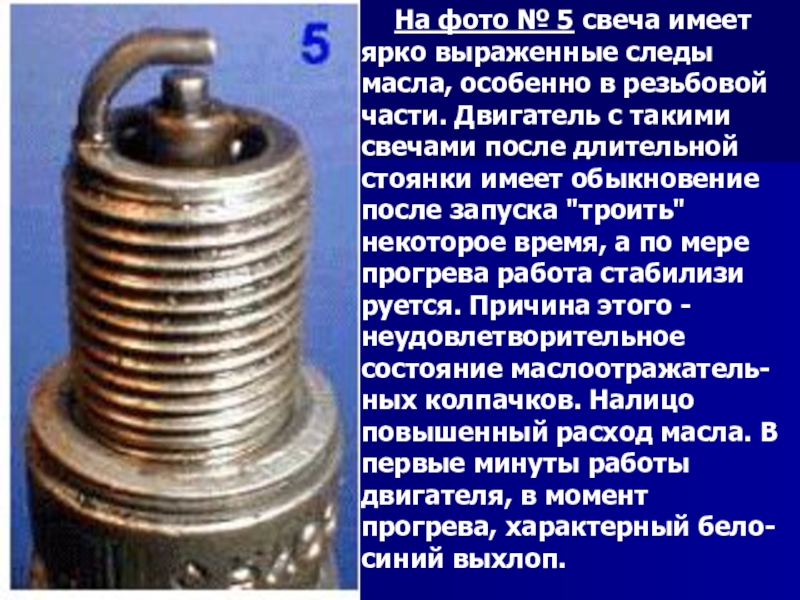 Слайд 29На фото № 5 свеча имеет ярко выраженные следы масла, особенно в