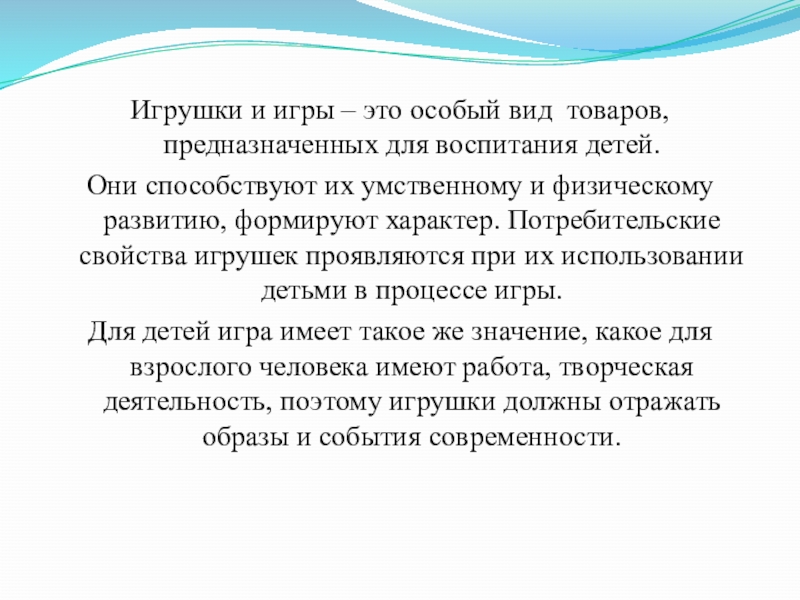 Слайд 2Игрушки и игры – это особый вид товаров, предназначенных для воспитания