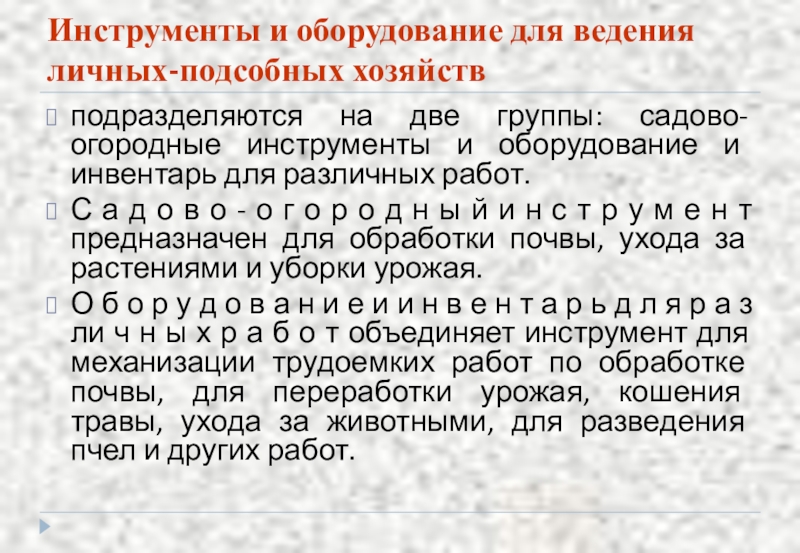 Слайд 71Инструменты и оборудование для ведения личных-подсобных хозяйств