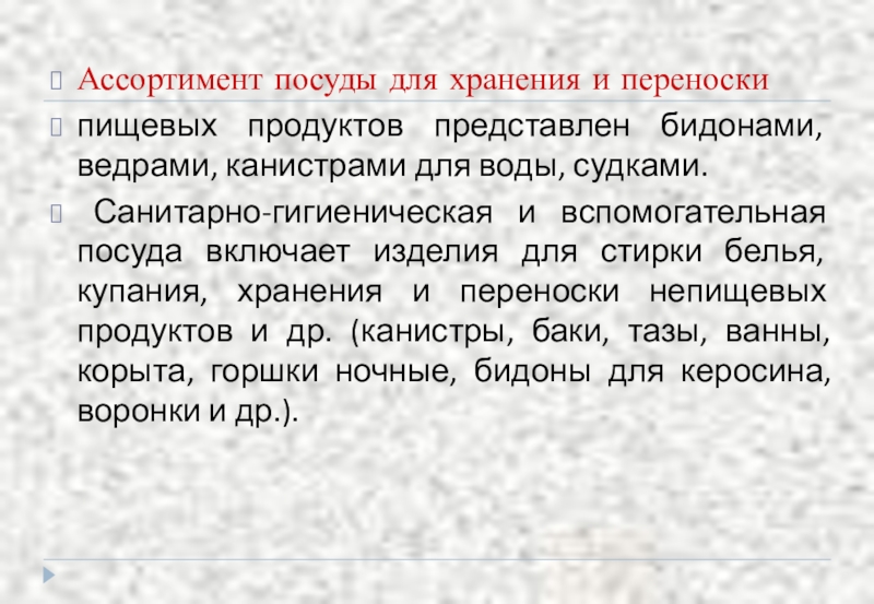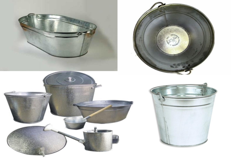 включает следующие виды изделий: баки для стирки белья, тазы, ванны, корыта, ведра для кратковременного хранения холодной воды, бидоны для керосина, лейки, воронки для заливки горюче смазочных материалов.