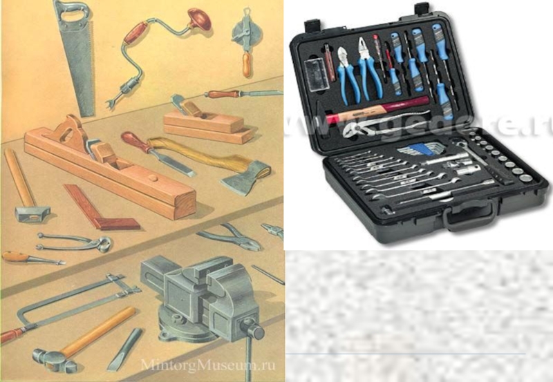 инструменты и оборудование и инвентарь для различных работ.