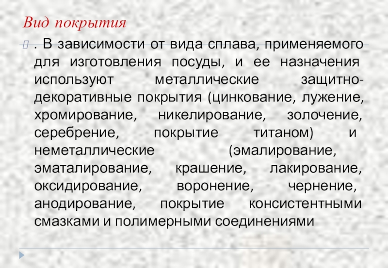Этими свойствами покрытия определяется целевое назначение луженой посуды.