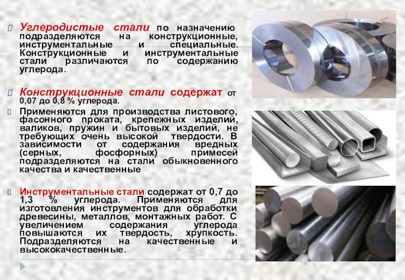Углеродистые стали по назначению подразделяются на конструкционные, инструментальные и
