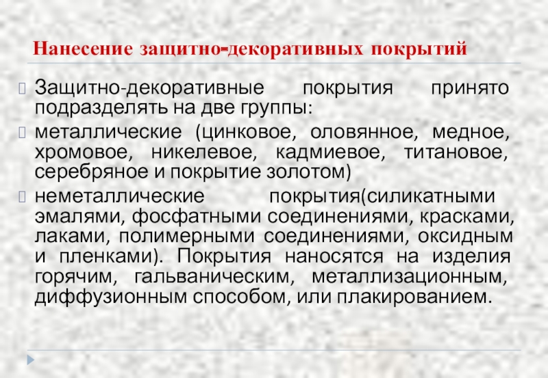Изделия из мельхиора и нейзильбера покрывают серебром или золотом, из латуни - хромом, никелем; применяют химическое и электрохимическое окрашивание, чернение.