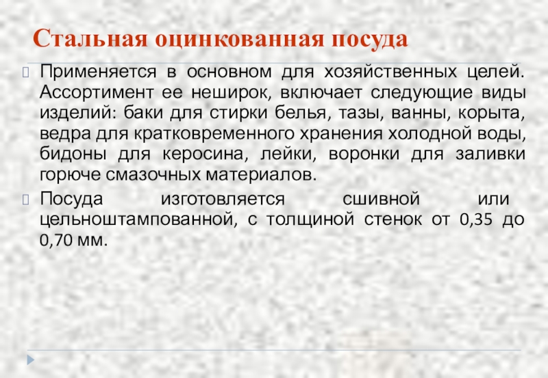 Слайд 50Стальная оцинкованная посуда