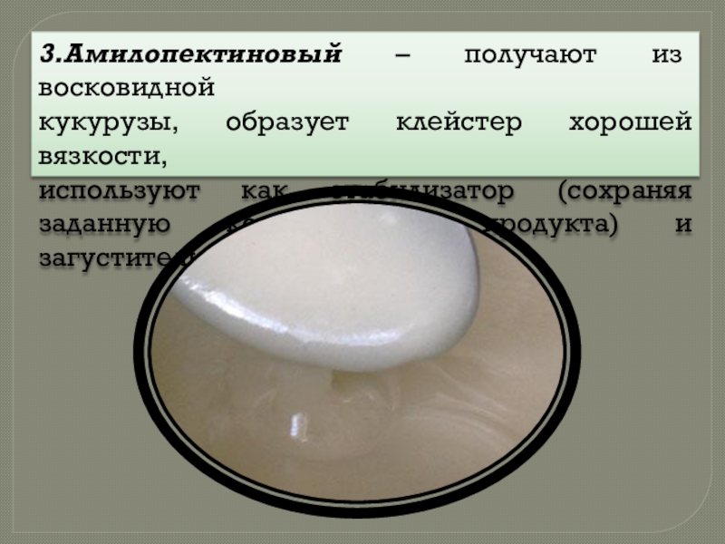 Окисленный крахмал (обладает разнообразными свойствами по вязкости).