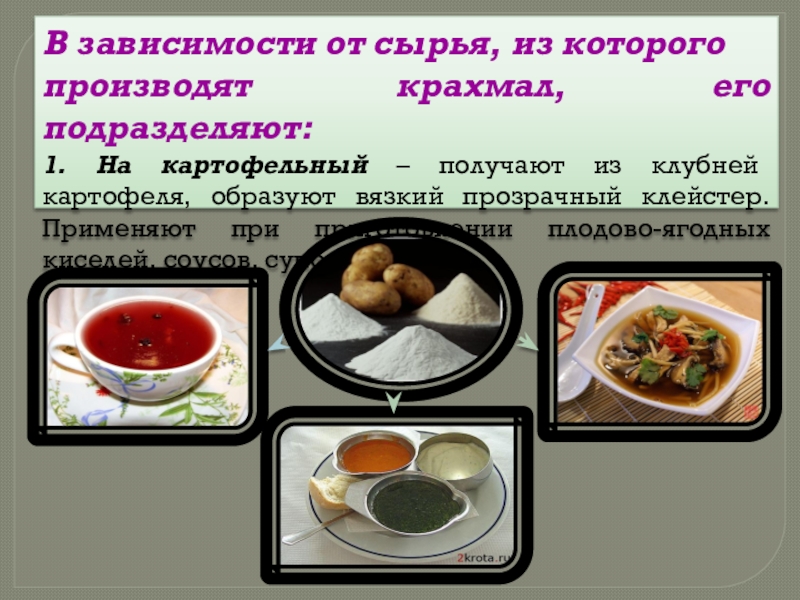 Энергетическая ценность 100г. Крахмала 313 – 342 ккал,