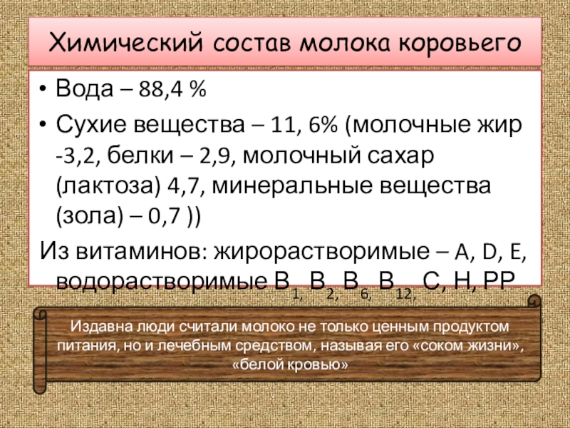 Издавна люди считали молоко не только ценным продуктом питания, но и лечебным средством, называя его «соком жизни», «белой кровью»