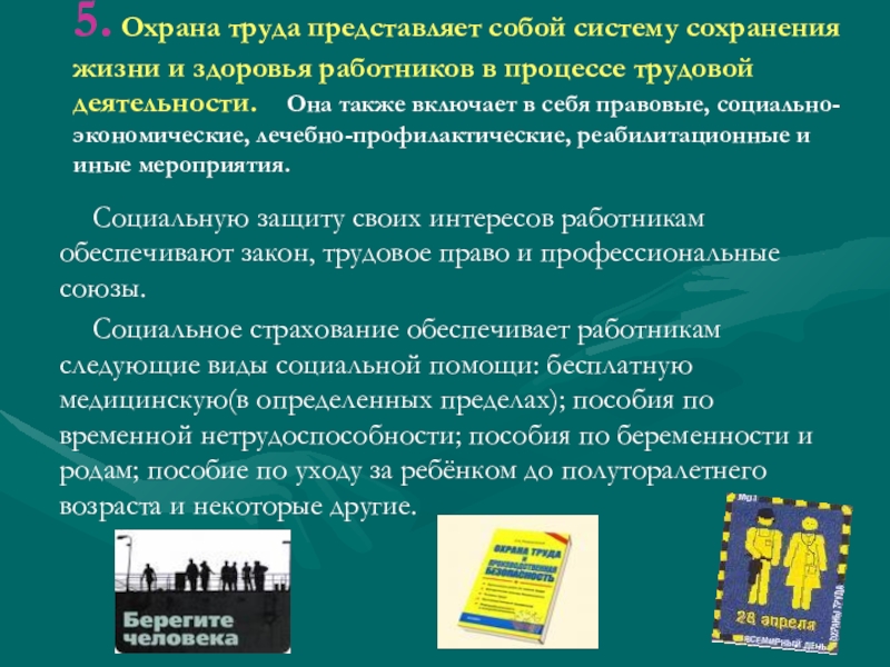 Социальную защиту своих интересов работникам обеспечивают закон, трудовое право и профессиональные союзы.
