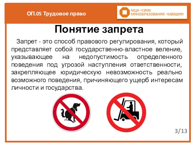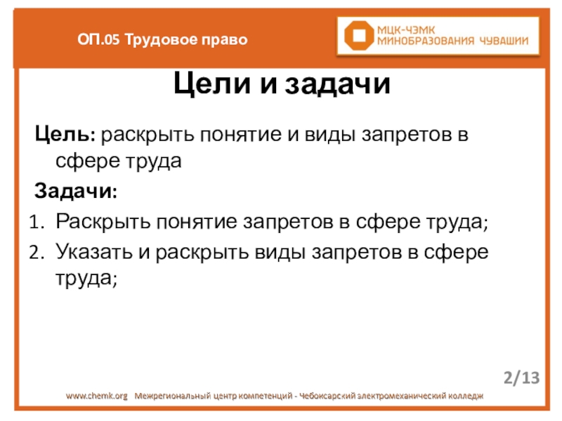 Цель: раскрыть понятие и виды запретов в сфере труда