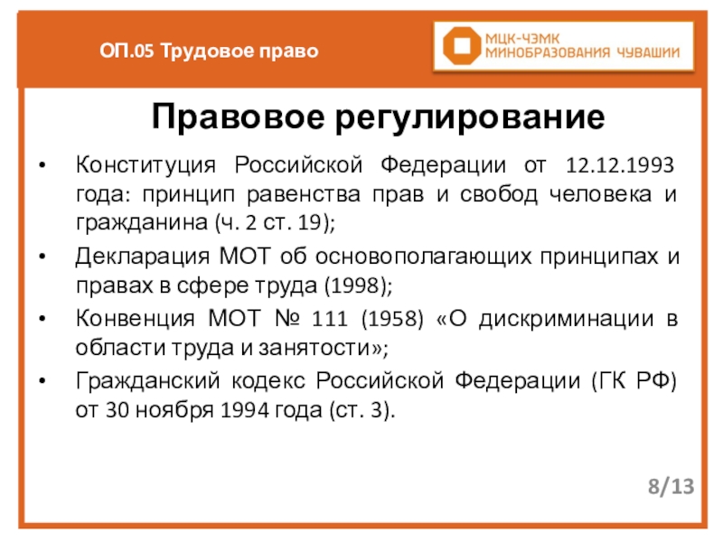 Конституция Российской Федерации от 12.12.1993 года (ст. 37);