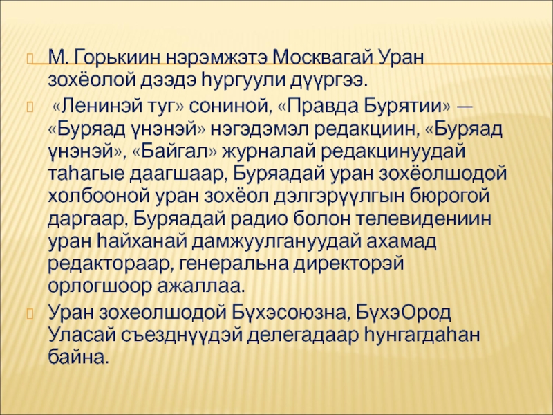 Буряад Уласай соёлой габьяата хүдэлмэрилэгшэ