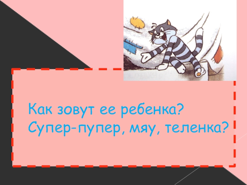 Слайд 19Как зовут ее ребенка? Супер-пупер, мяу, теленка?
