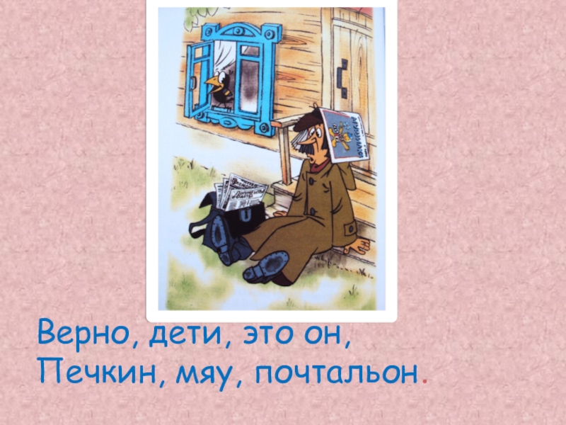 Слайд 14 Верно, дети, это он, Печкин, мяу, почтальон.