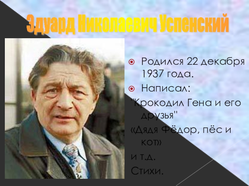 Эдуард Николаевич Успенский Родился 22 декабря 1937 года.Написал: