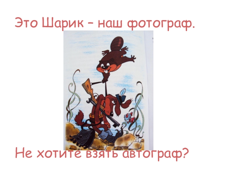 Слайд 16Это Шарик – наш фотограф. Не хотите взять автограф?