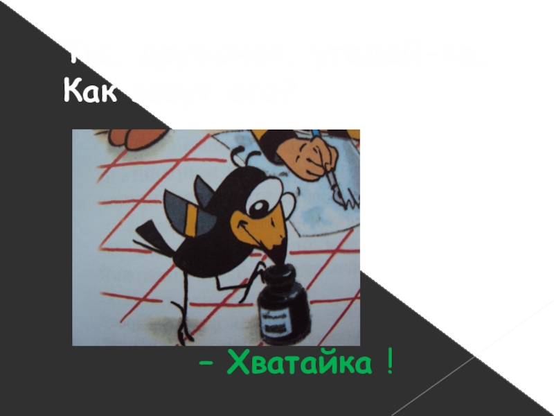 Слайд 24Ты, дружочек, угадай-ка, Как зовут его? – Хватайка !