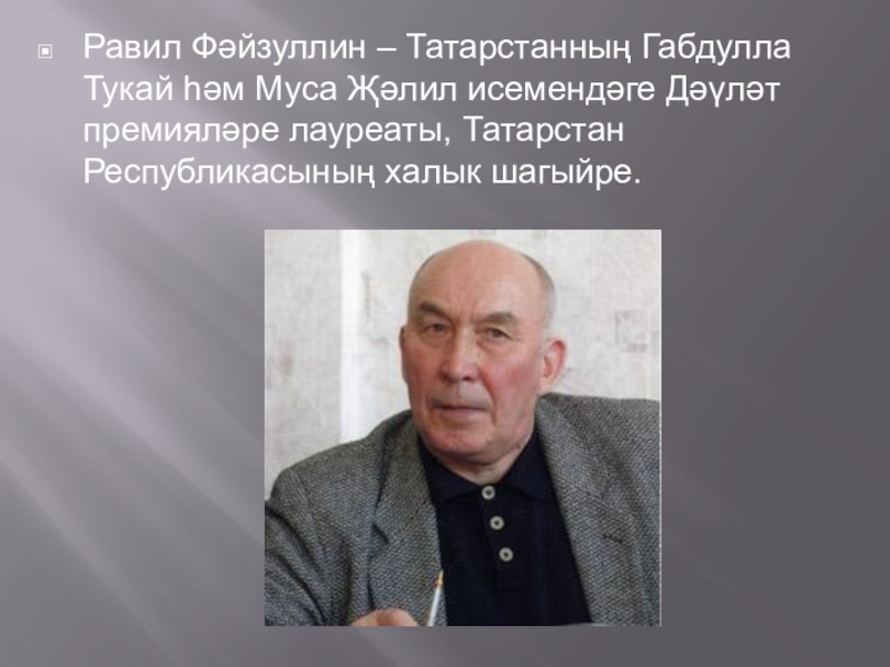 Слайд 3Равил Фәйзуллин – Татарстанның Габдулла Тукай һәм Муса Җәлил исемендәге Дәүләт