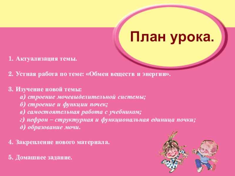 Продолжить развитие понятия об организме как едином целом, постоянстве внутренней среды организма.