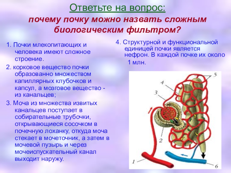 4. Структурной и функциональной единицей почки является нефрон. В каждой почке их около