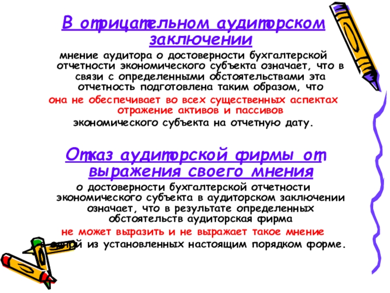 о достоверности бухгалтерской отчетности экономического субъекта в аудиторском заключении означает, что в результате определенных обстоятельств аудиторская фирма