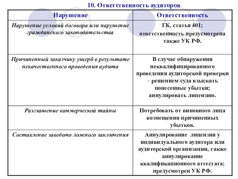 предоставлять каких-либо сведений о хозяйственной деятельности проверяемого им объекта. За разглашение секретов своих клиентов он должен нести моральную и материальную ответственность.