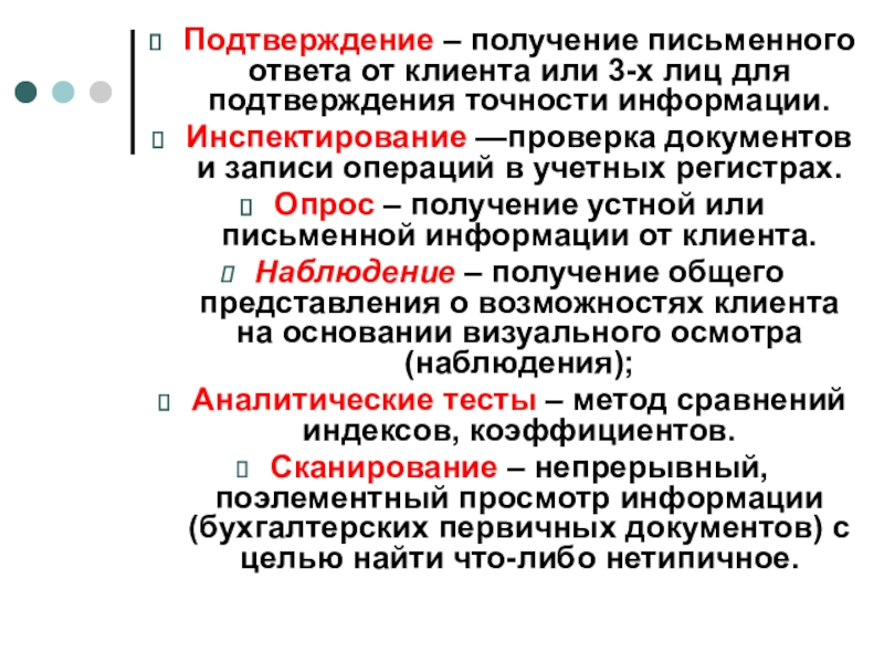 Слайд 37Подтверждение – получение письменного ответа от клиента или 3-х лиц для подтверждения