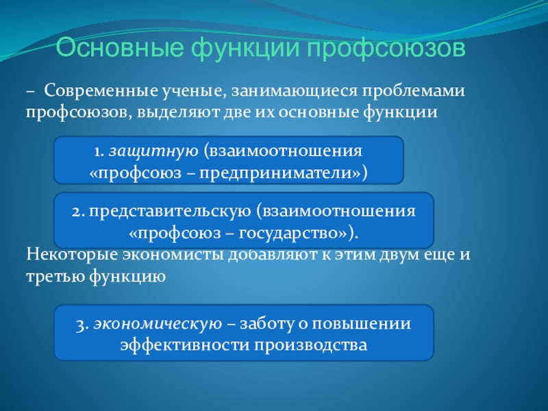 1. защитную (взаимоотношения «профсоюз – предприниматели»)