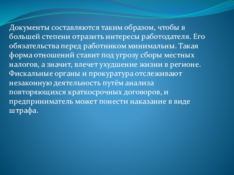 Слайд 7Документы составляются таким образом, чтобы в большей степени отразить интересы работодателя.