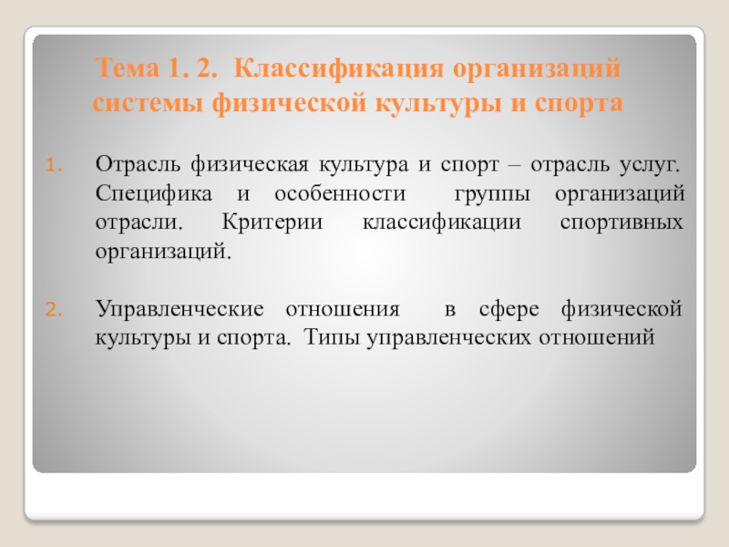 Слайд 21Тема 1. 2. Классификация организаций системы физической культуры и спорта