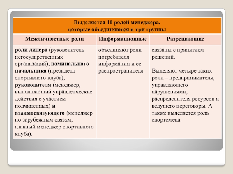 Группы ролей менеджера в спортивной организации. Основные направления работы спортивного менеджера.